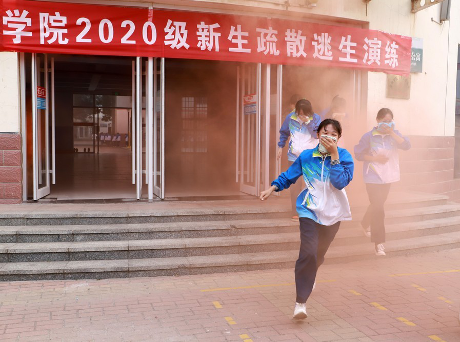 为了提高演练效果,学生处、保卫处提前制定了详细的演练方案,并召集各教学单位负责人进行了工作安排,明确职责要求,做好演练准备。在演练过程中,随着报警信号发出,各教学单位辅导员指挥学生用湿毛巾捂住口鼻,迅速撤离到安全地带。